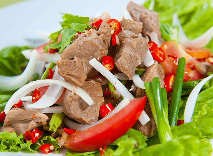 In fact the two recipes accompany each other regularly in a Thai’s regular diet, along with a serving of sticky (glutinous) rice. Laab namtok is a Thai salad, but it’s not a vegetable salad, instead it’s a meat salad.