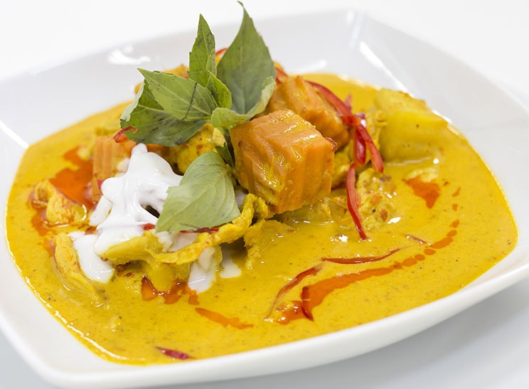 A dish with a strong southern Thai influence originating from the large Muslim population that occupy the far southern islands of Thailand. With a rich texture and distinct aroma, the Thai yellow curry is a popular late afternoon or evening meal.